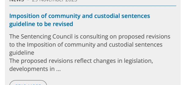 The Sentencing Council have published a revised Imposition of Community and Custodial Sentences guideline for consultation. After years of research into sentencing practice and the impact on children of maternal imprisonment, I am really pleased to see such strong, evidence-led, development of the sentencing guidelines.
