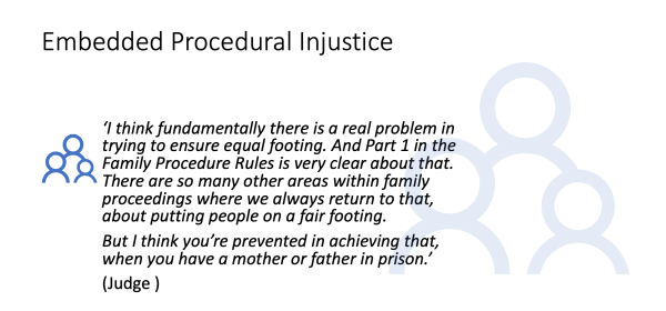 The report provides an in depth analysis of the systemic barriers that hinder imprisoned mothers from participating effectively in family proceedings, thus undermining the principles